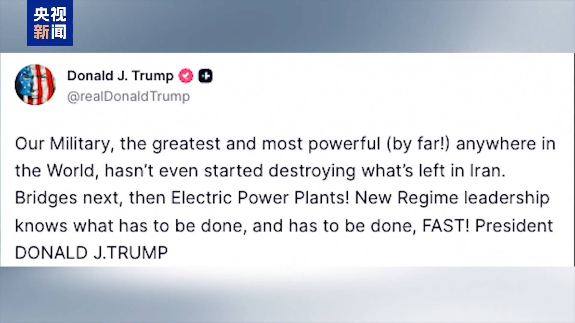 rrr rr特朗普再发文 威胁打击伊朗桥梁和发电厂